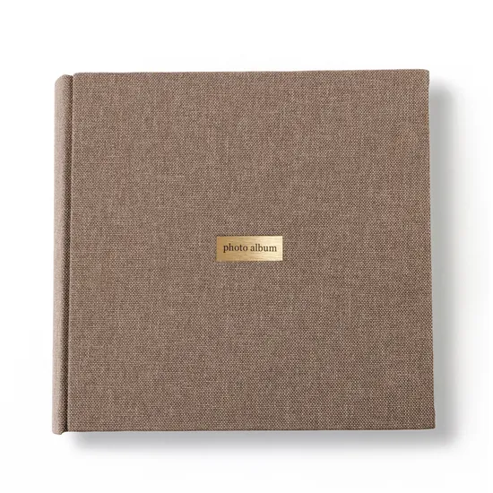 Листы из плотной бумаги с местом для записей. Алюминиевая вставка 0,5х4см с надписью photo album. Это готовый продукт без персонализации.